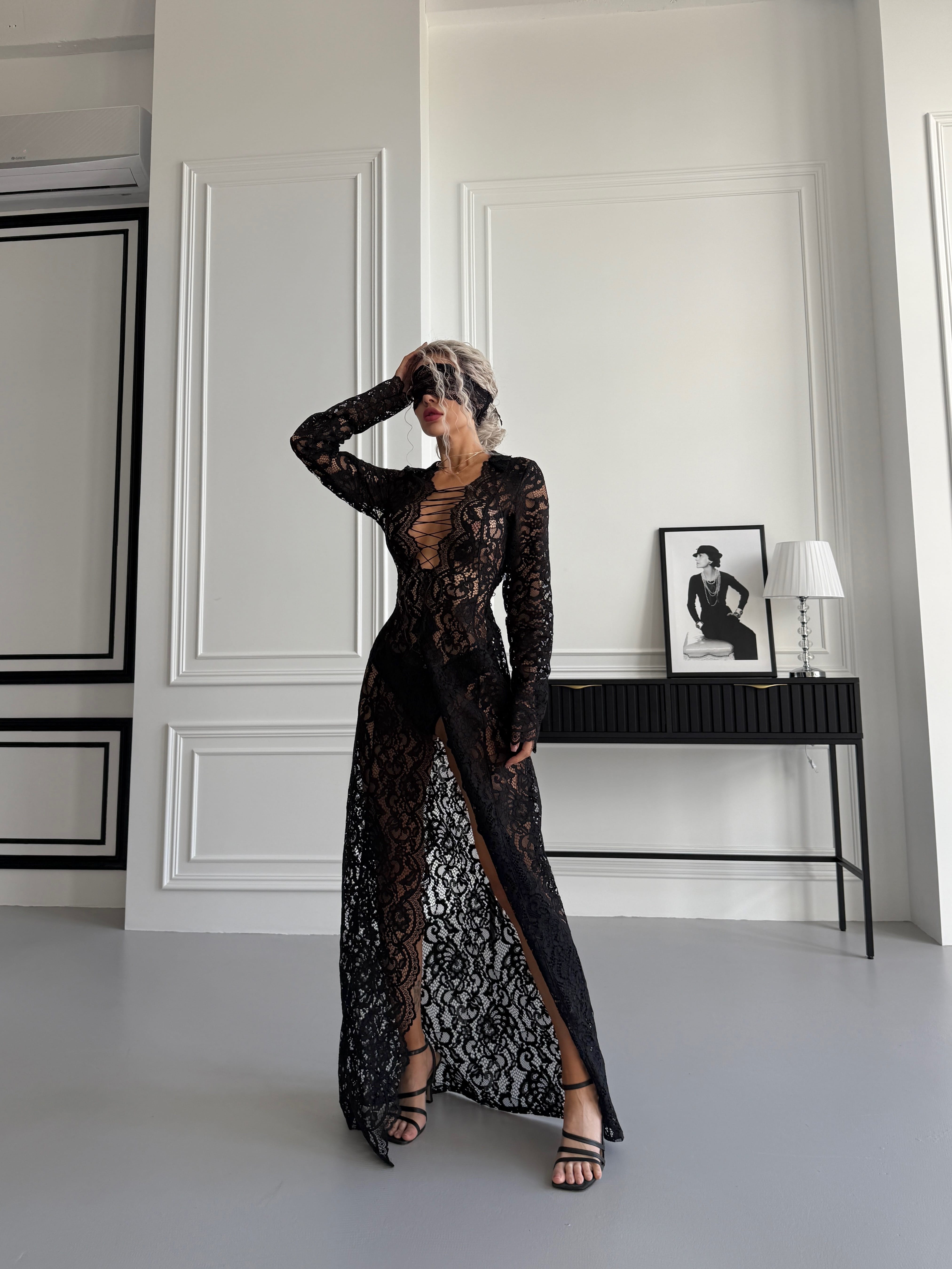 Виготовлена зі 100% мереживного гіпюру, що ніжно огортає тіло, залишаючи простір для уяви.